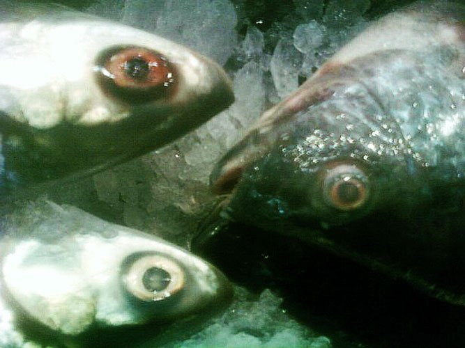 When my dad didn't go fishing and just wanted to get some fish he would go to Nishioka's Market on Sixth street in San Jose (California) they would sell fresh fish. When buying fish my dad would say to look at the eyes of the fish, if they're cloudy it's not fresh like the ones in the picture, if it's clear then it's fresh and those are the one's you want to buy. I always think about that fish eye lesson when I go to a market to buy fish.