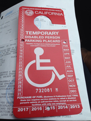 I was able to get a temporary Disabled Persons Parking Placard good for six months. This will be my first one. Haven't had to use it yet but this will be a pleasure finally being able to park up front and at parking meter spaces without having to pay. I know I'm probably going to get spoiled with it.