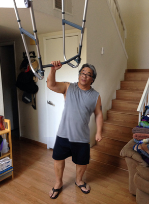 Not good, practicing walking without walker and fell two times. Experiencing weakening in the right hip.The walker is pretty light. I used to workout a lot at the gym and I can at least lift the walker over my head but walking is another story.