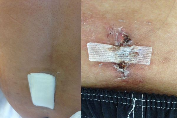 The pictures to the left are the wounds the day after surgery and 11 days after when the bandages started to fall off leaving just the scabs.