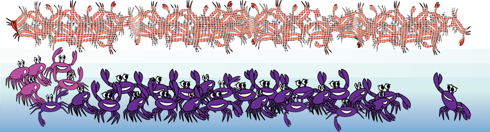 Curious thing started to happen to those crabs who listened to Soli as they developed their reasoning skills, their shells started to turn the color purple just like Soli's shell. It turns out the their shells are a direct reflection of their inner self. Purple being the combination of red and blue, the warmest and coolest colors, is believed to be the color of good judgment. It is the color of people seeking spiritual fulfillment and the truth. It is said if you surround yourself with purple you will have peace of mind. Purple is the color of wisdom.
