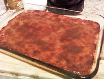Bake at 350 for about 45 minutes, or until whole top layer begins to bubble.