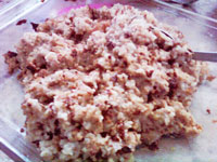 Cook sweet rice in rice cooker. When done, mix in 1 cup of light brown sugar until dissolved.